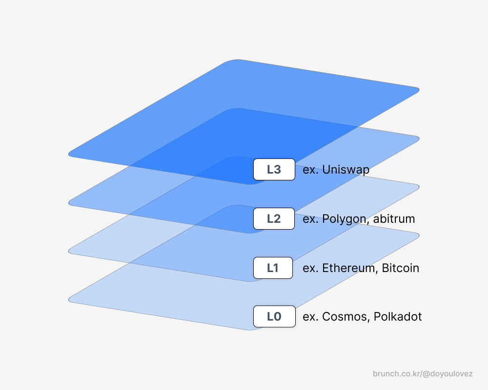 레이어 1 (L1): block 메인 체인입니다. 비트코인, 이더리움, 솔라나 등이 레이어 1입니다. 모든 트랜잭션이 block에 기록되고, 최종 보안을 제공합니다.