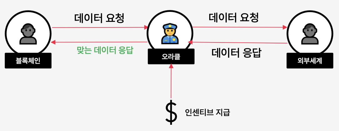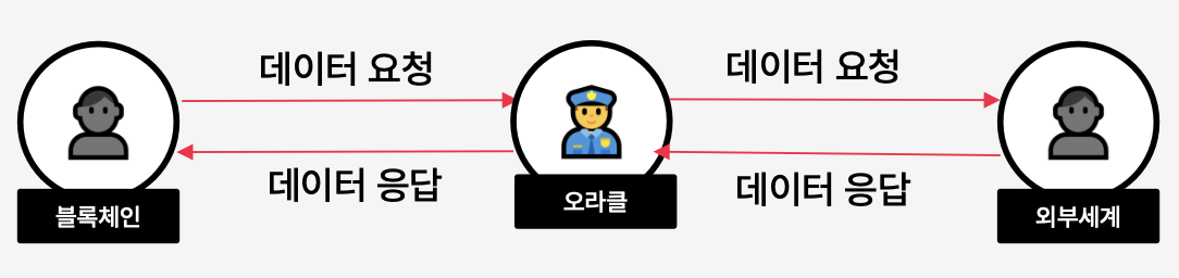 오라클은 이 문제를 해결하는 다리입니다. 외부 데이터를 블록체인 안으로 가져오는 중간자 역할을 합니다. 미국 IT 기업 오라클과는 전혀 다른 개념입니다.