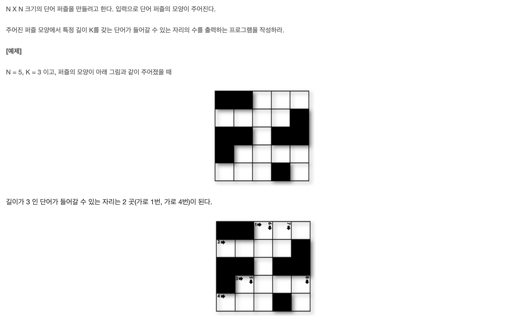 행렬의 사이즈를 N으로, 단어의 길이를 K로 입력받습니다. 추가적으로, 사용자로부터 입력받은 내용으로 matrix를 생성합니다.