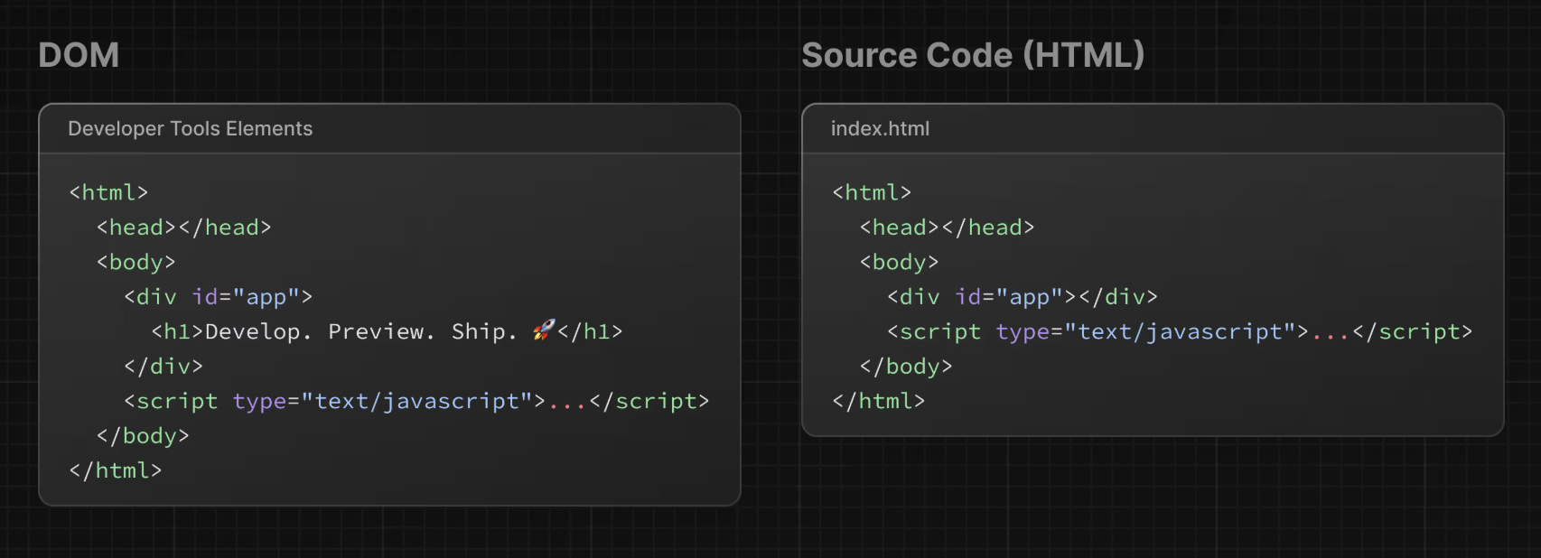 <h1>Develop. Preview. Ship.</h1>4. React core concepts 🎯