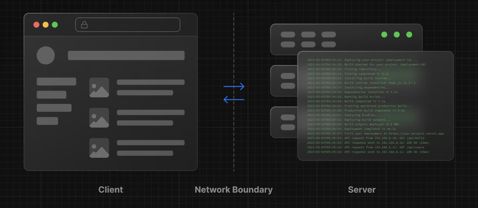 React에서는 컴포넌트 트리의 어느 지점에 Network Boundary를 세울지 직접 선택할 수 있습니다. 예를 들어, 사용자의 게시물 데이터를 가져와 화면에 그리는 작업은 서버에서 처리하고, 각 게시물에 있는 상호작용 요소인 '좋아요' 버튼은 클라이언트에서 렌더링하도록 구성할 수 있겠죠.