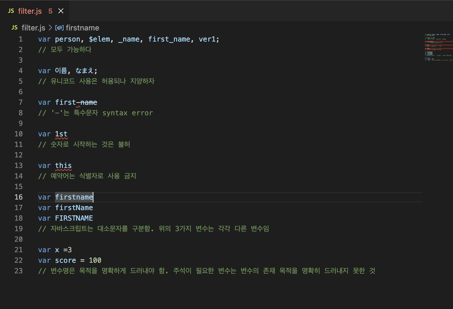 식별자(Identifier)는 어떤 값을 구별해서 식별해내는 고유한 이름이다. 식별자를 명명할 때에는 크게 3가지 규칙을 준수해야 한다.