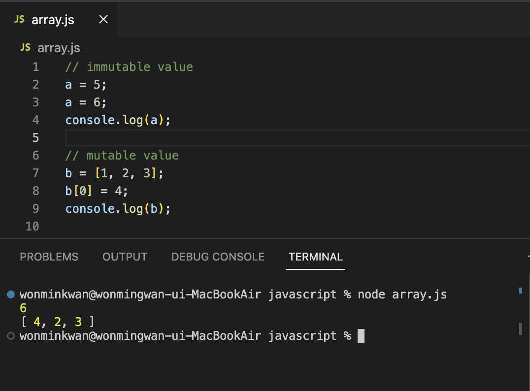 그러나 JavaScript의 문자열은 ``원시 타입``이며, 이는 곧 immutable value임을 의미한다. '문자열과 불변성'에 관한 내용은 뒤에서 다룬다고 한다.