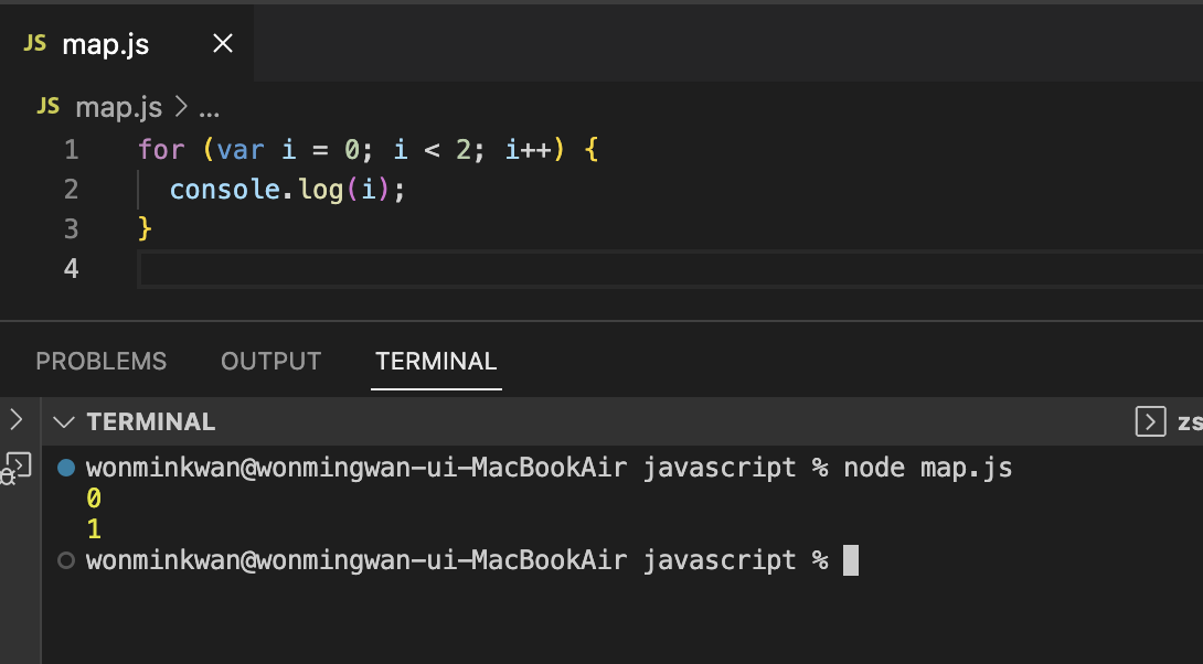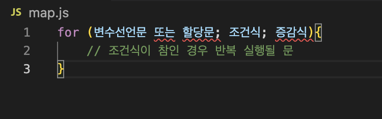 변수 i는 반복을 의미하는 iteration의 i이다. 일반적으로 i를 변수명으로 사용한다. 1. 가장 먼저 변수 선언문 'var i=0'이 실행된다. 변수 선언문은 단 한 번만 실행된다. 2. 변수 선언문의 실행이 종료되면 조건식이 실행된다. 현재 i 값은 0이므로 조건식 평가 결과는 true다. 3. true라는 평가 결과에 따라 코드 블록이 실행된다. 그런데 이때 ``증감문으로 실행 흐름이 이동하는 것이 아니라 코드 블록으로 실행 흐름이 이동``한다. 4. 코드 블록의 실행이 종료되면 증감식 i++가 실행되어 i의 값은 1이 된다. 5. 이후에 ``변수 선언문이 아니라 조건식이 실행``된다. 현재 i 값은 1이므로 조건식 평가 결과는 true다. 6. 동일한 방식으로 진행하다가 i의 값이 2가 되면 for 문의 실행이 종료된다.