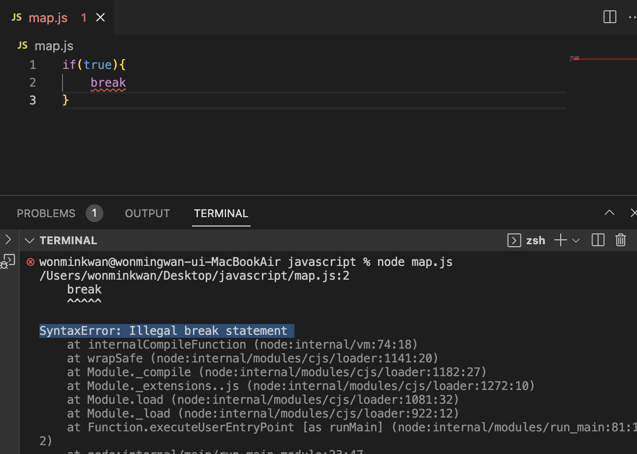 if 문은 조건문이기 때문에 break를 사용할 경우 syntaxError가 반환된다.