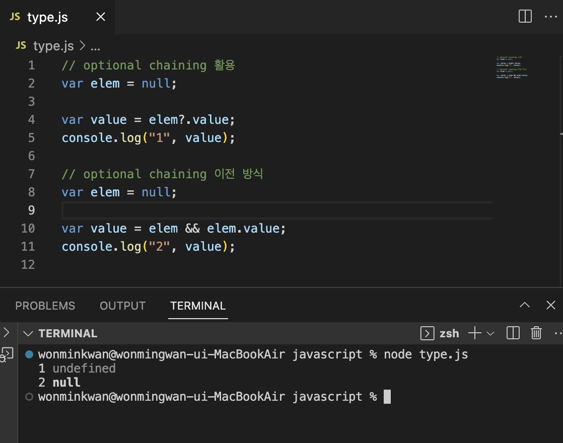 **<객체를 가리키기를 기대하는 변수가 null 또는 undefined가 아닌지 확인하고 프로퍼티를 참조할 때>**