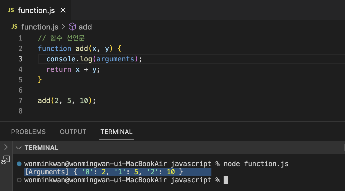 arguments 객체에 대해서는 18장에서 자세히 다루도록 하겠다.