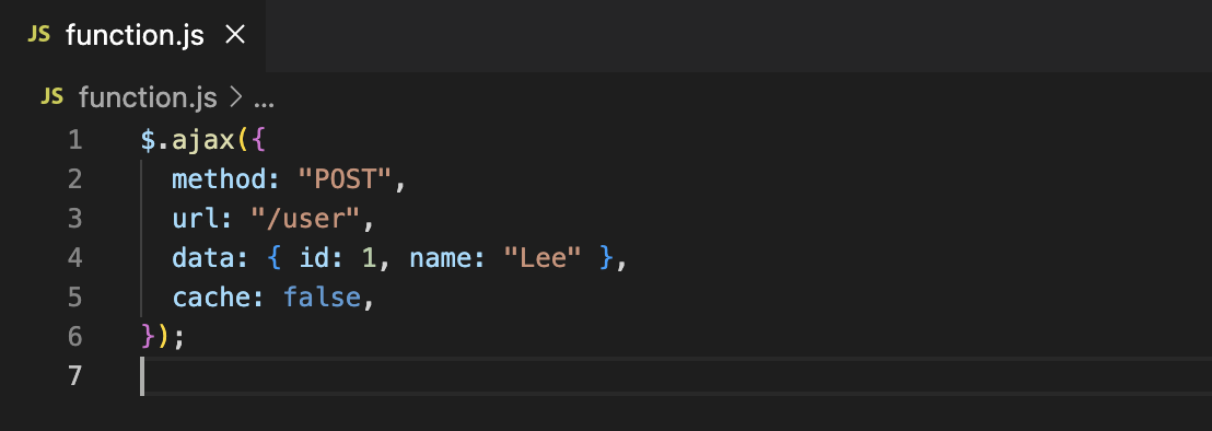 제이쿼리의 ajax 메서드에 객체를 인수로 전달하는 예시라고 한다. 아~~~~~ 그렇구나~~~~~~!