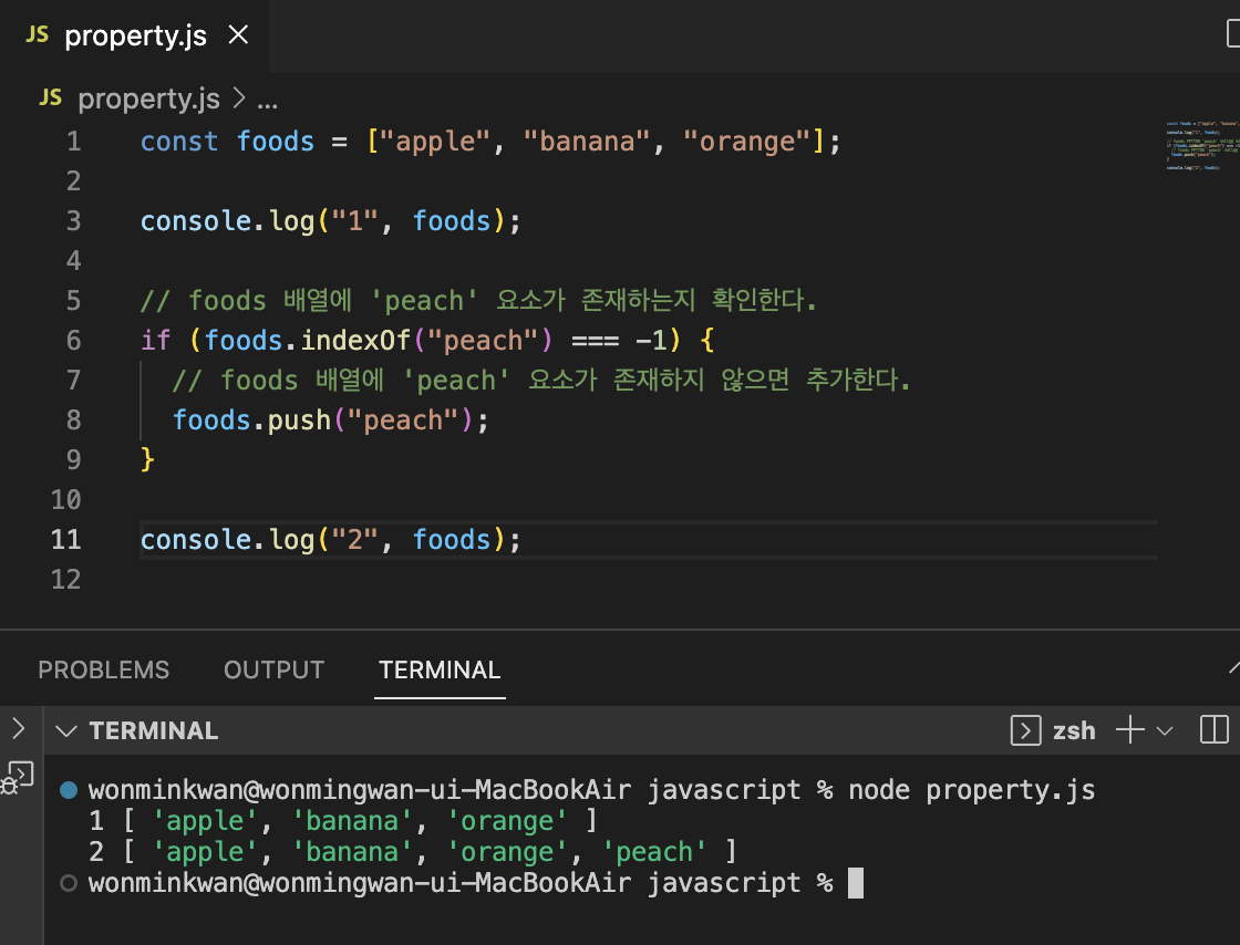 indexOf 메서드 대신, ES7에서 도입된 Array.prototype.includes 메서드를 사용하면 가독성이 더 좋다.