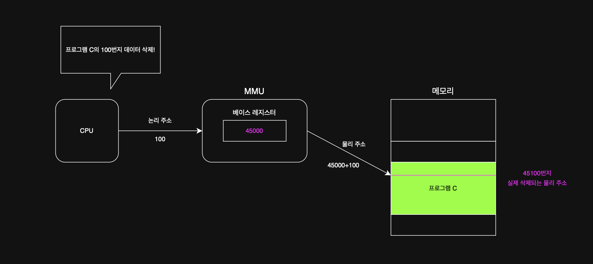 논리 주소가 0번지부터 999번지인 메모장 프로그램에, CPU가 "메모장 1500번지에 숫자 100을 저장하라!"와 같은 명령을 내리면 예기치 못한 동작에 의해 상당히 피곤해진다. 뜬금없이 게임 프로그램 정보가 삭제될 수도 있다.