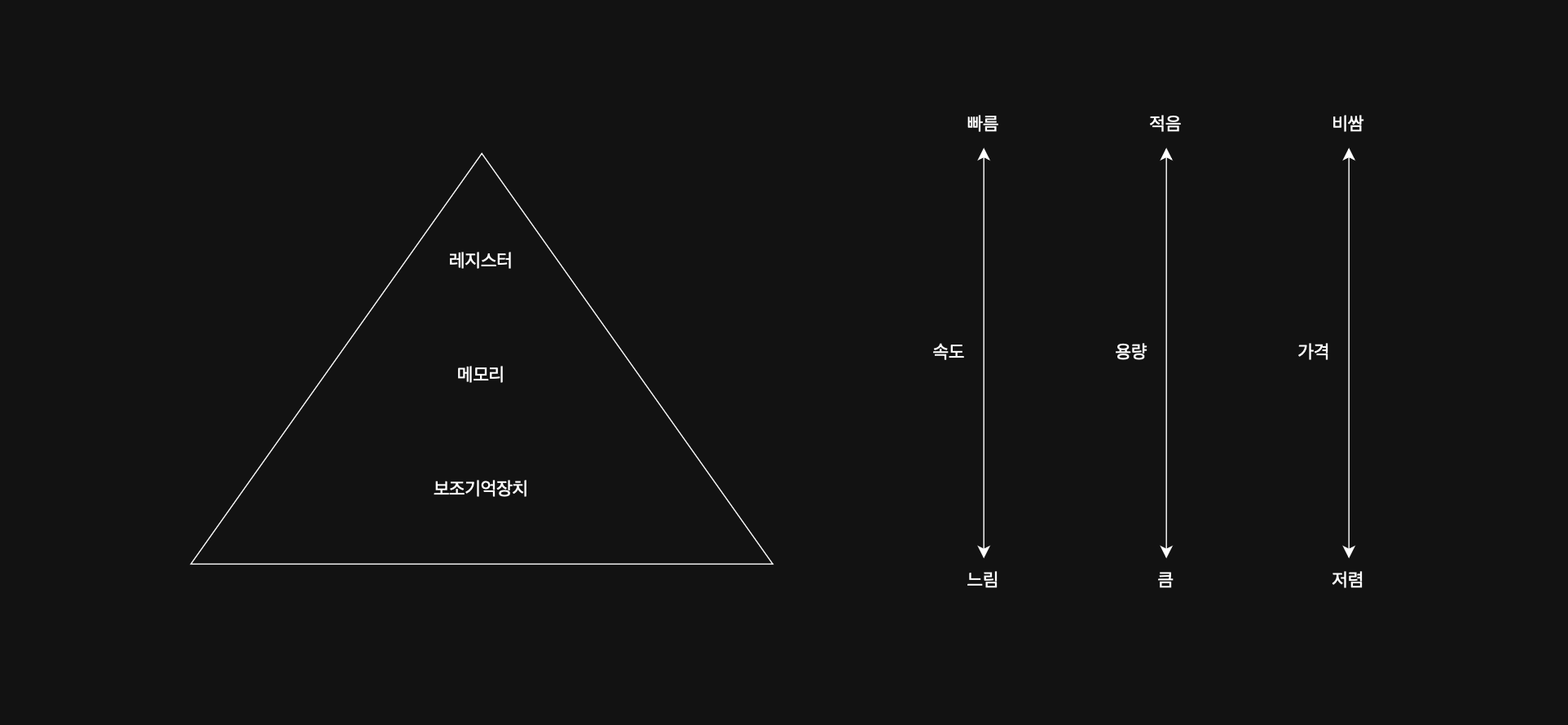속도가 빠르고 용량이 크며 가격이 저렴한 저장 장치는 없다. 각각의 저장 장치의 장단점이 명확하기 때문에 목적에 맞게 사용하는 것이 중요하다.