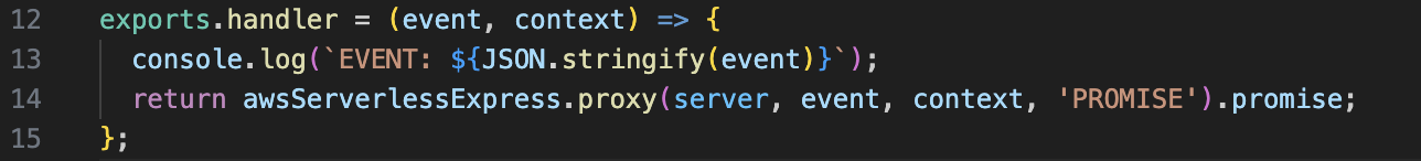 return awsServerlessExpress.proxy(server, event, context, 'PROMISE').promise;