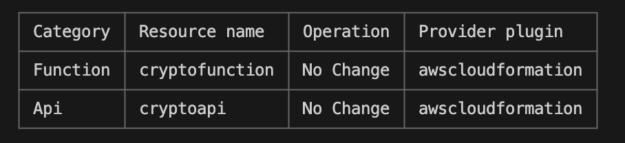 ? Do you want to edit the local lambda function now? No"Successfully added resource cryptofunction locally." 문구가 등장하면 함수가 성공적으로 생성된 것이다.