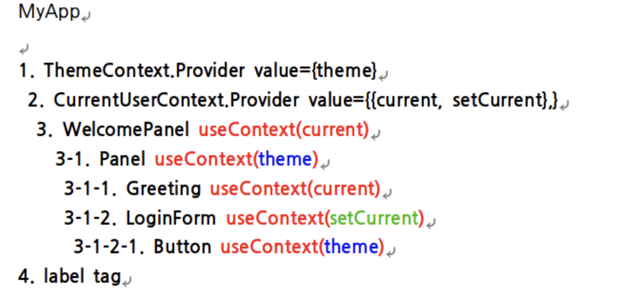 }MyApp에서 Button과 ThemeContext는 동일한 계층에 존재한다.