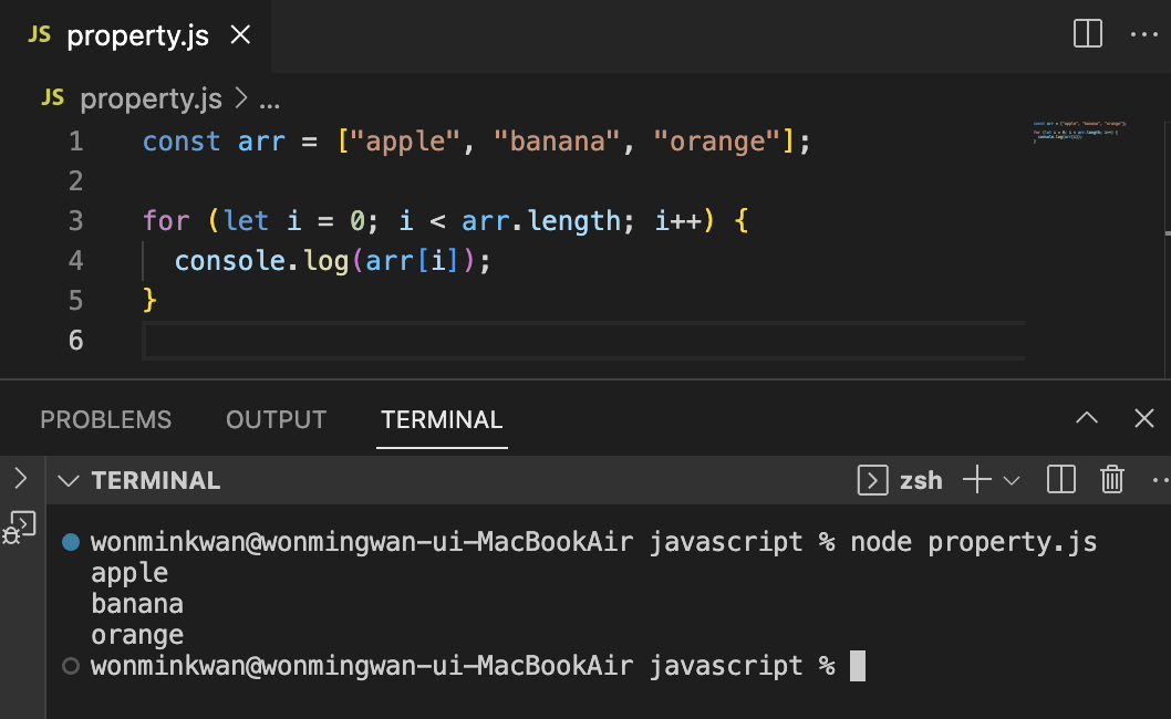 배열의 특징인 ```요소(element)```와 ```인덱스(index)```는, 배열의 길이를 나타내는 ```length 프로퍼티```로 이어진다. length 프로퍼티를 갖기에 for 문을 통해 순차적으로 요소에 접근할 수 있다. 추가적으로 자바스크립트에 배열 타입은 없다. 배열은 객체 타입이다.
