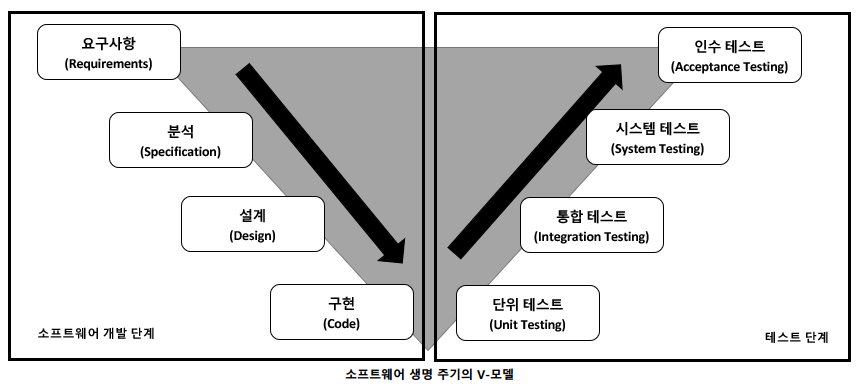 8. 개발 단계에 따른 애플리케이션 테스트 ✅ - 애플리케이션 테스트와 소프트웨어 개발 단게를 연결하여 표현한 것을 V-모델이라고 함